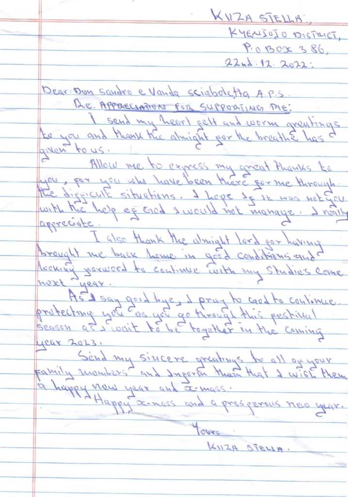 L’associazione BCICI con cui abbiamo collaborato per effettuare due adozioni a distanza in Uganda ci ha inoltrato i ringraziamenti delle bambine.